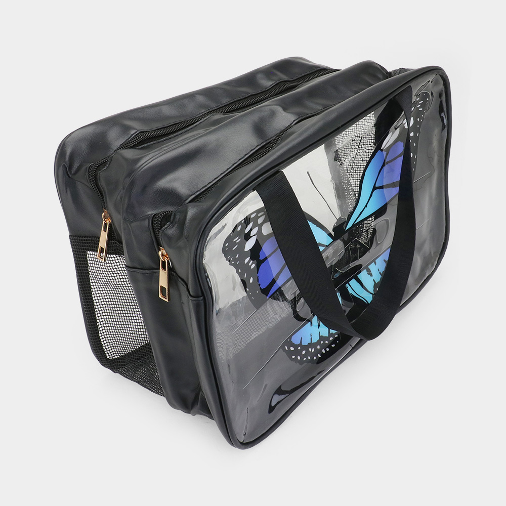 Butterfly Message Printed Translucent Mesh Divided Shoulder Bag / Tote Bag