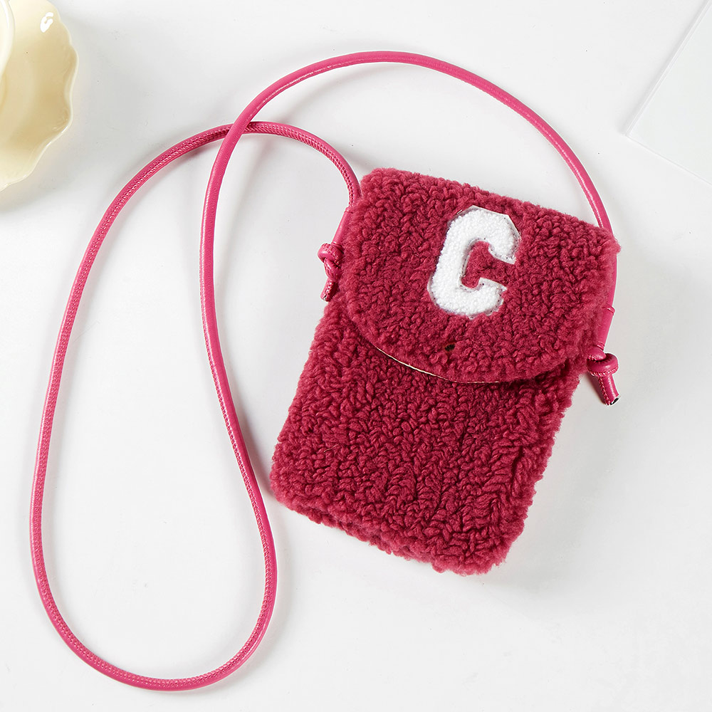 C Initial Monogram Sherpa Crossbody Cellphone Bag