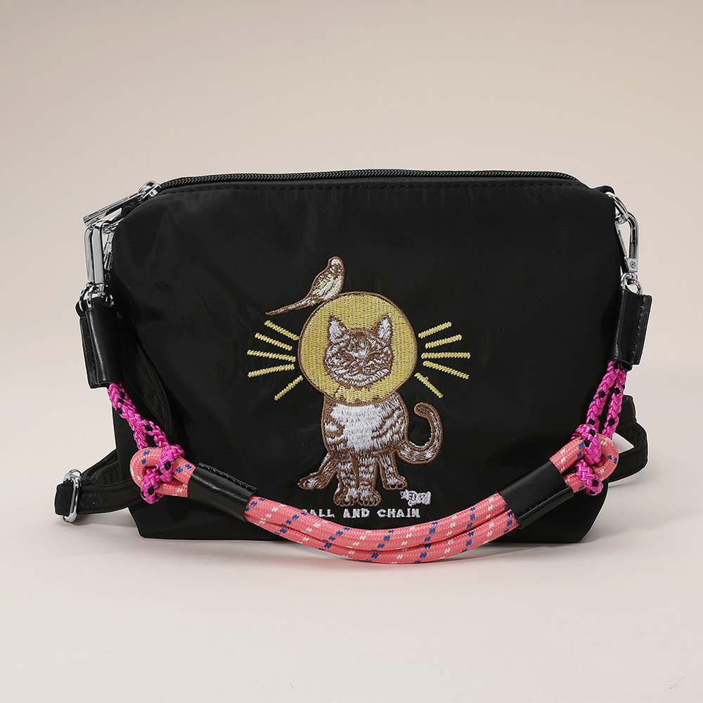 Cat Character Embroidered Shoulder Bag