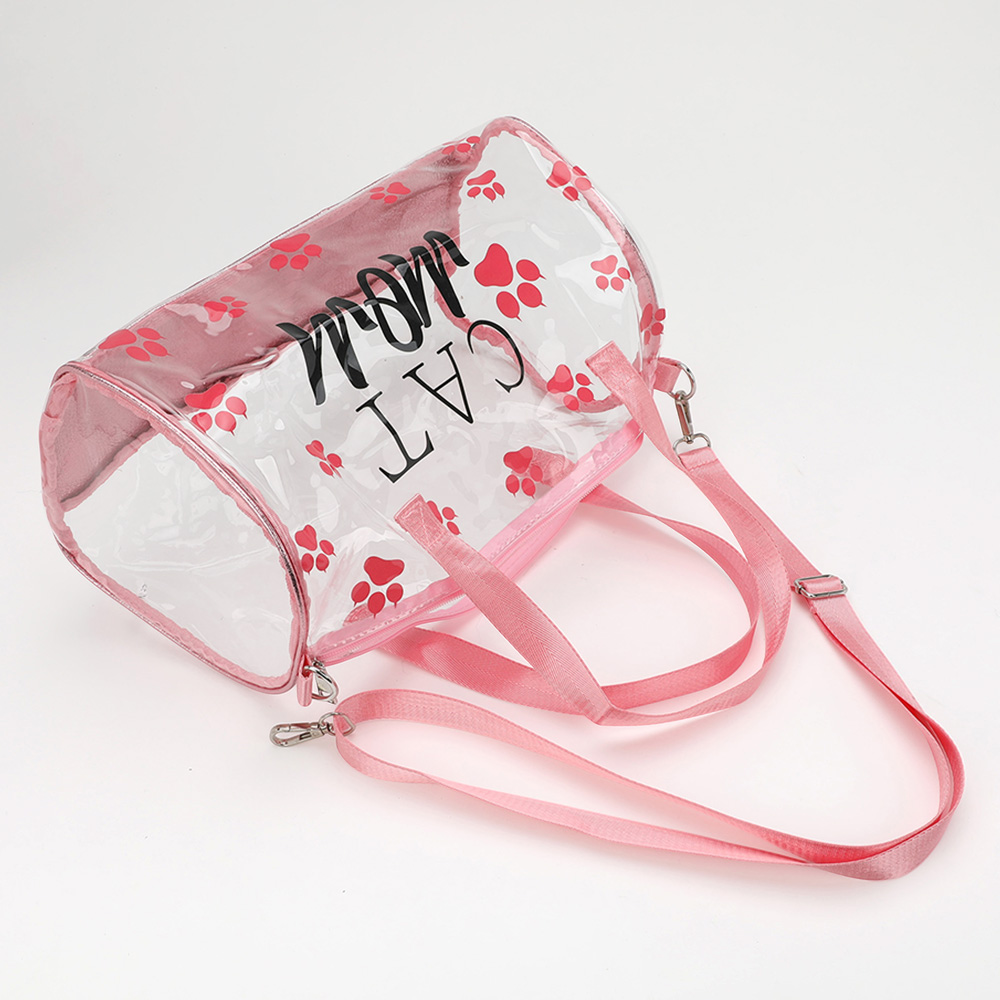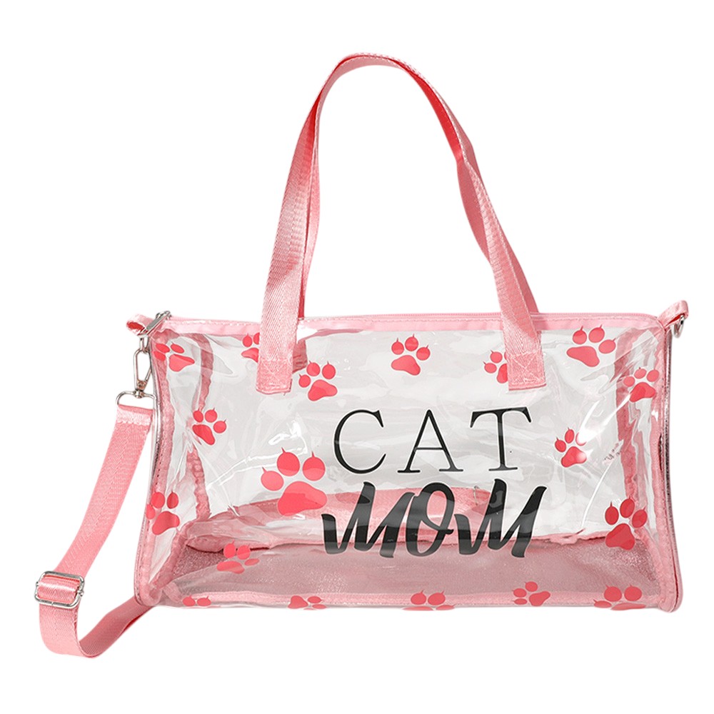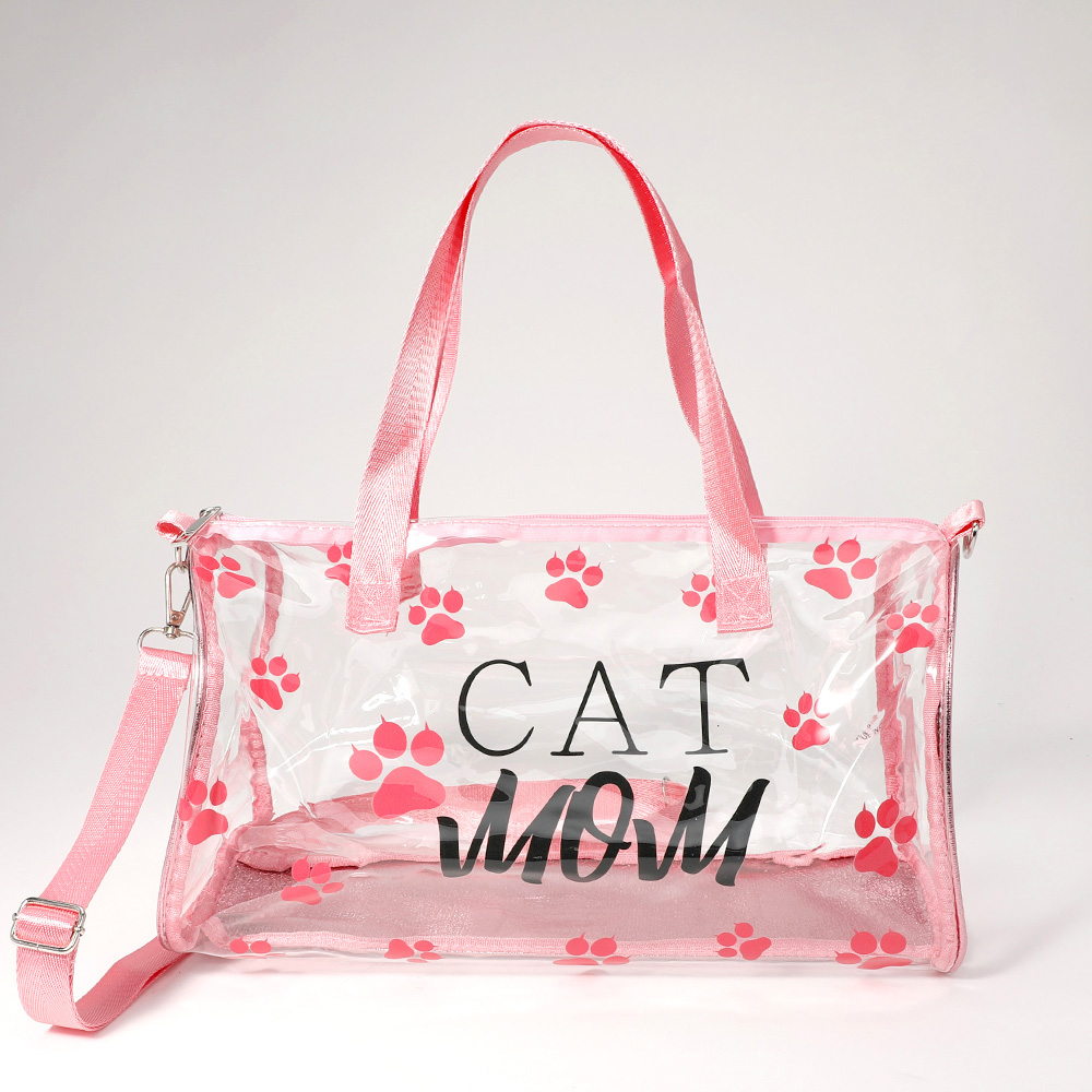 CAT MOM Message Paw Pattern Printed Transparent Boston Bag / Crossbody Bag