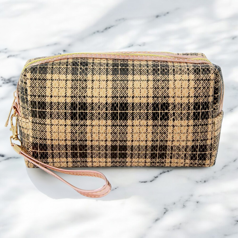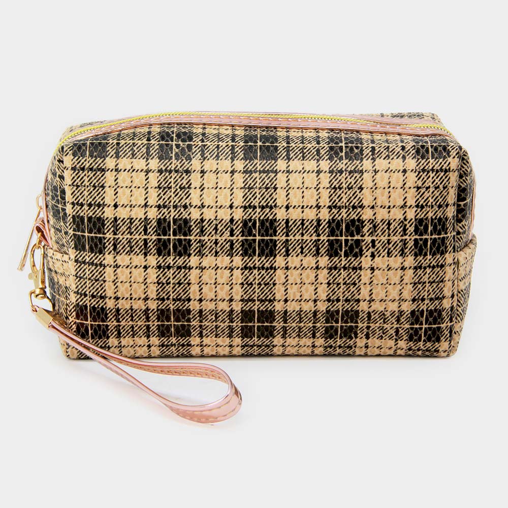 Classic Plaid Check Patterned Wristlet Cosmetic Pouch Bag