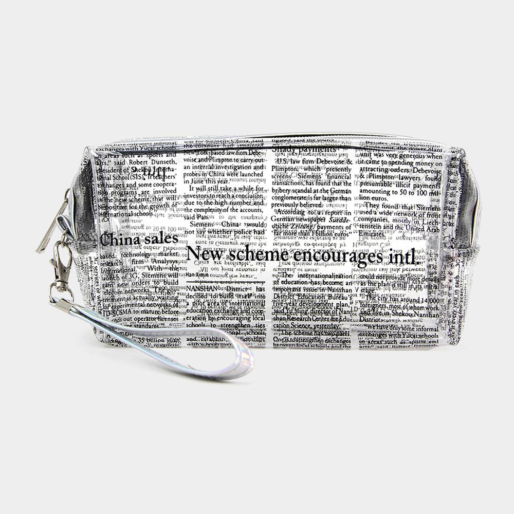 Clear Newspaper Print Pouch Bag
