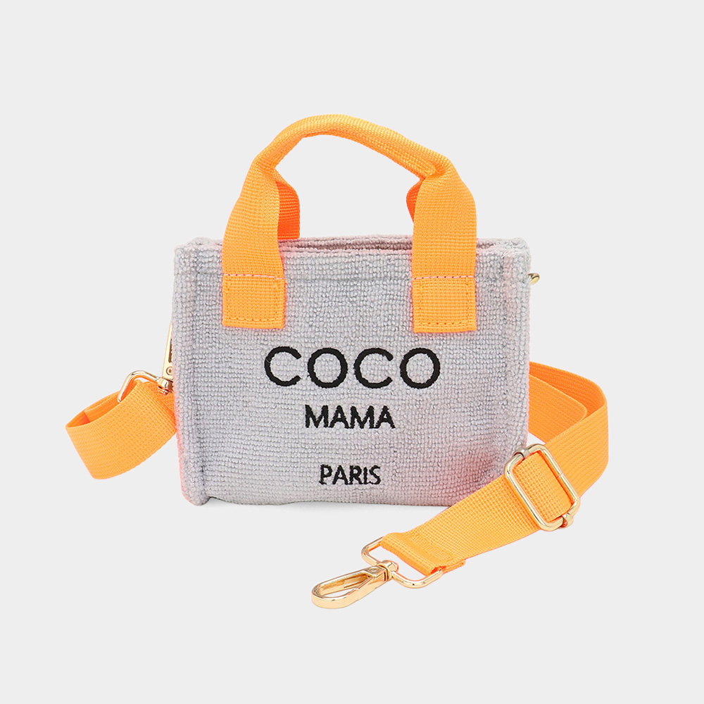 COCO MAMA Message Pointed Terry Cloth Mini Tote Bag / Crossbody Bag