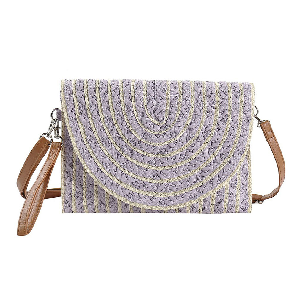 Color Striped Two Tone Straw Clutch / Crossbody Bag