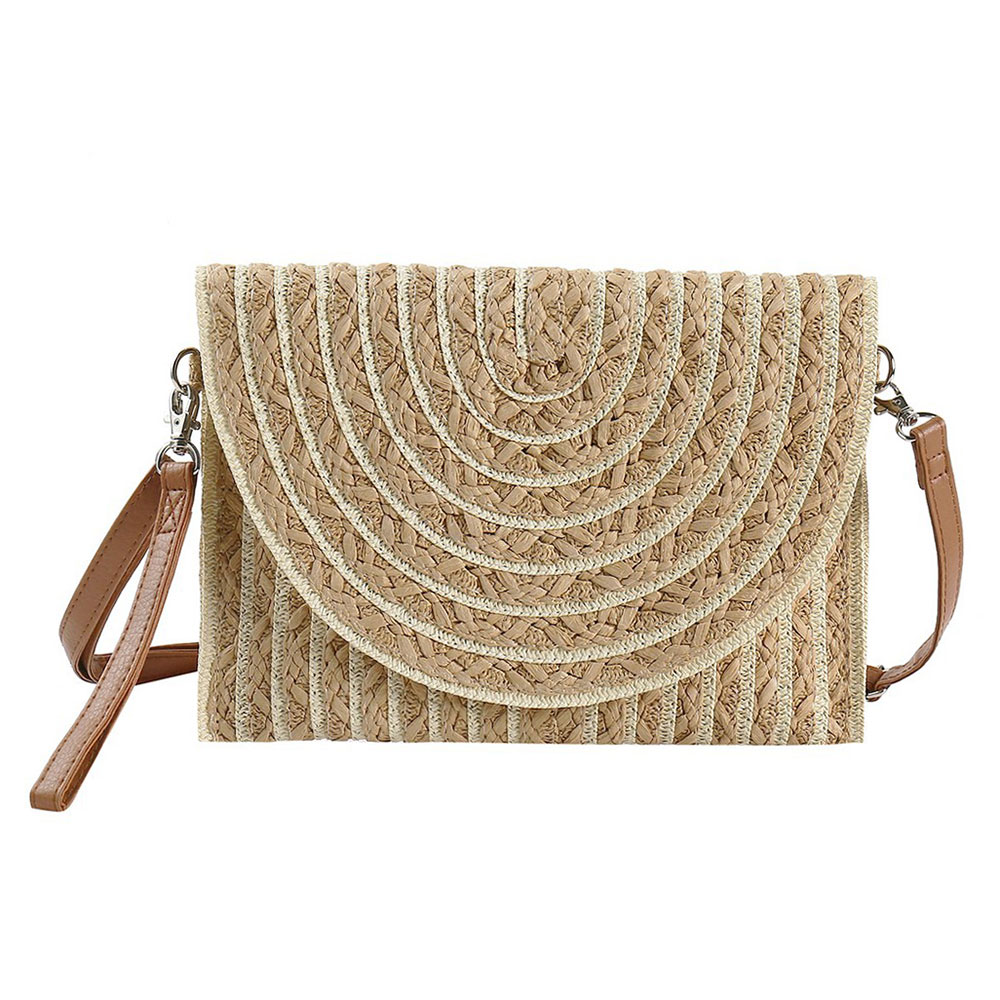 Color Striped Two Tone Straw Clutch / Crossbody Bag