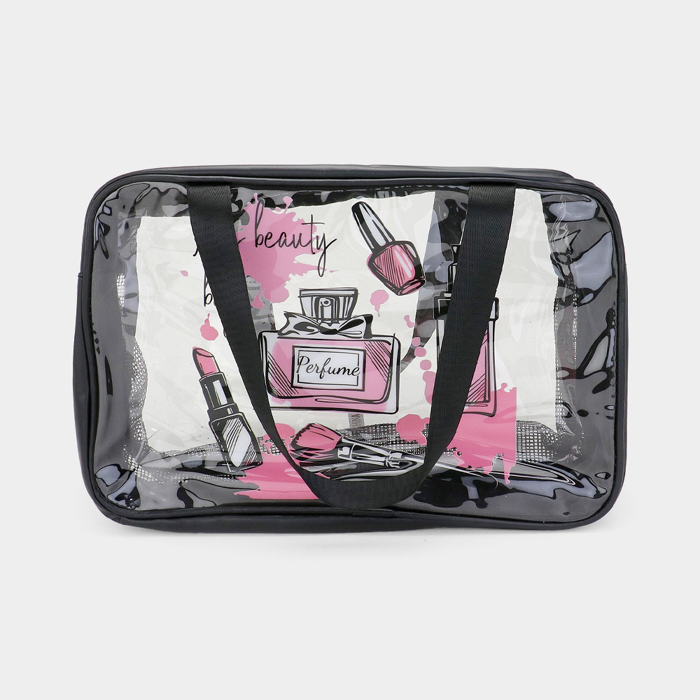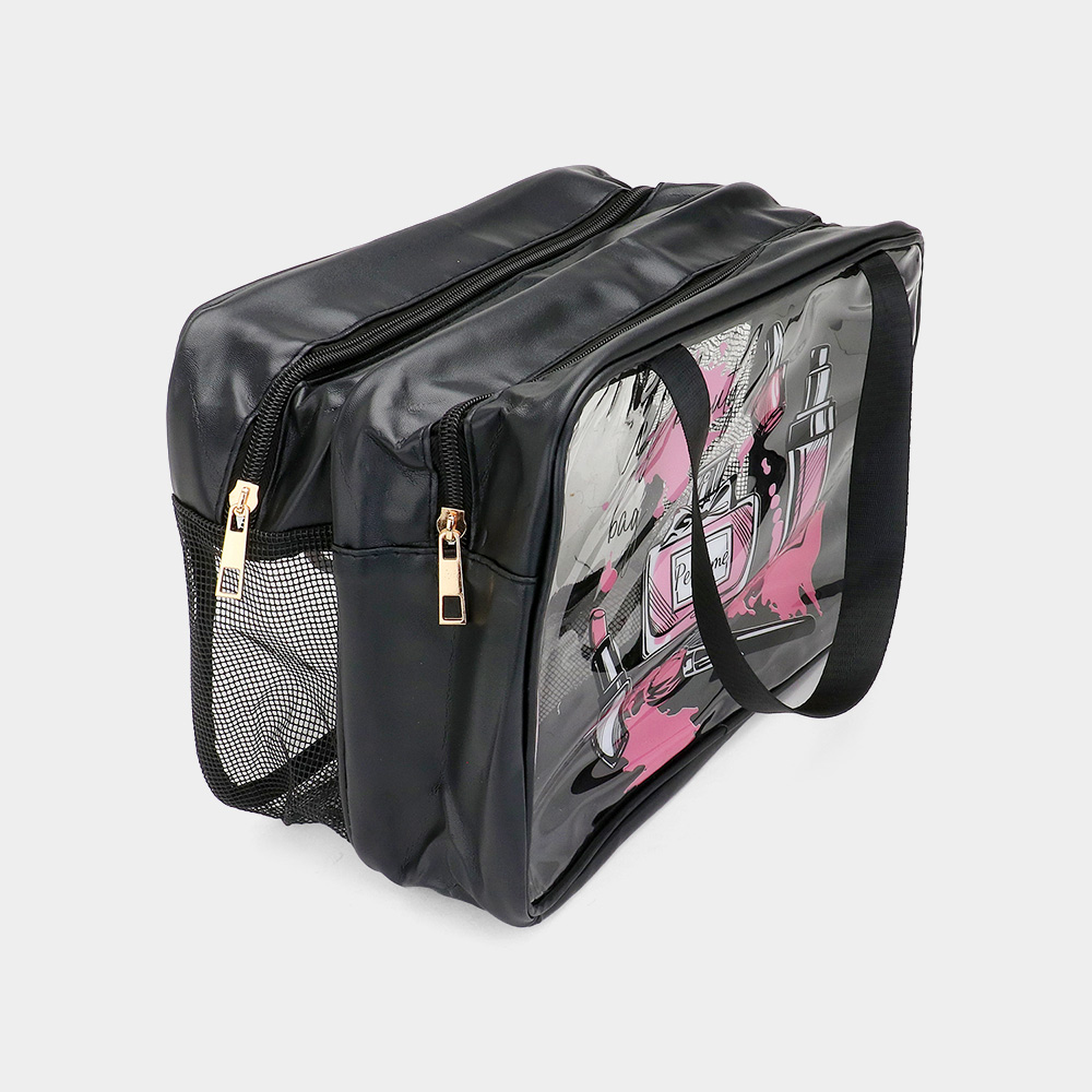 Cosmetic Printed Translucent Mesh Divided Shoulder Bag / Tote Bag