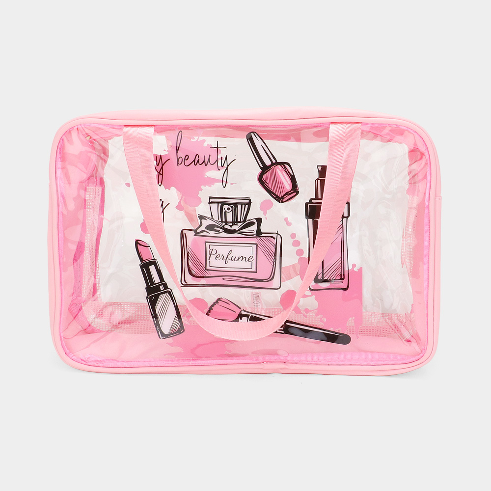 Cosmetic Printed Translucent Mesh Divided Shoulder Bag / Tote Bag