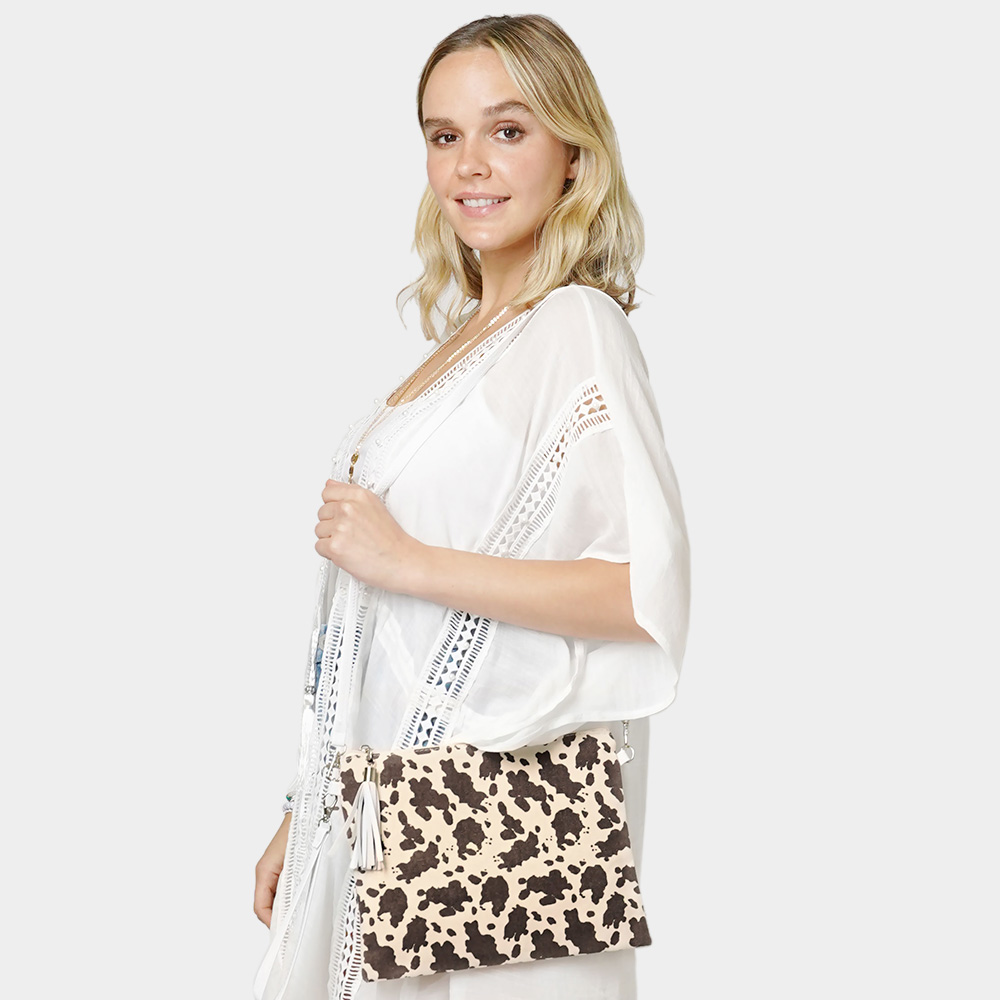 Cow Patterned Wristlet Clutch / Crossbody Bag
