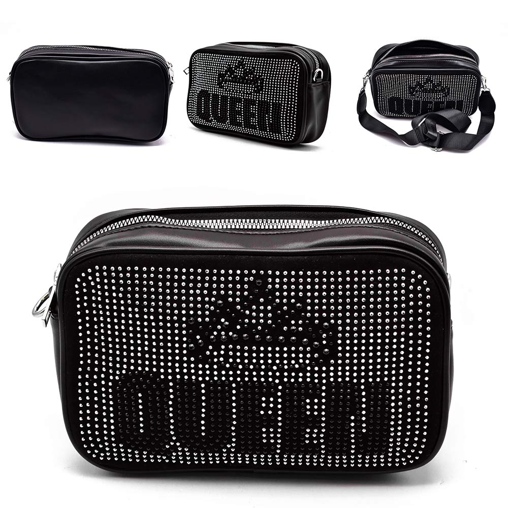 Crown Queen Message Faux Leather Rectangle Crossbody Bag