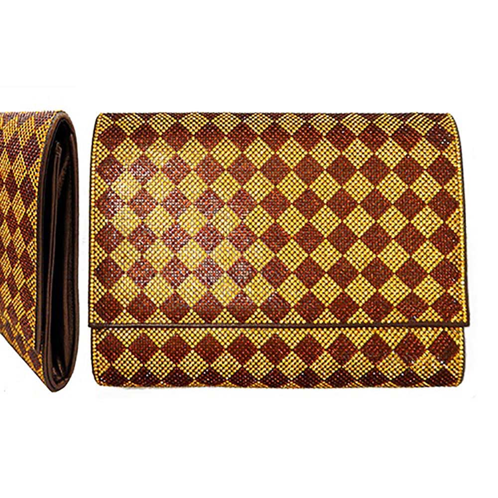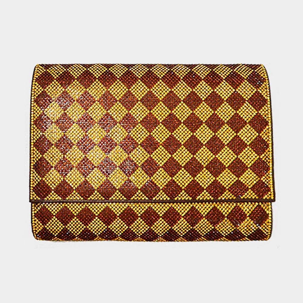 Crystal Rhinestone Pave Diamond Shape Crossbody Bag /Clutch