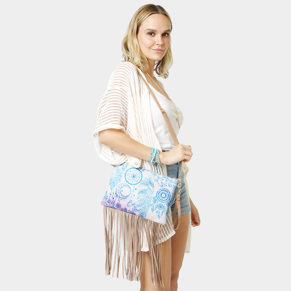Dream Catcher Print Tassel Wristlet Clutch / Crossbody Bag