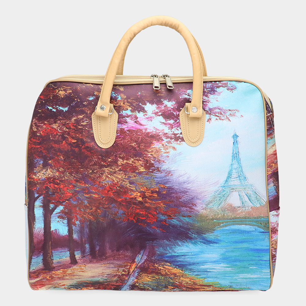 Eiffel Tower Printed Carry On Top Handle Bag / Crossbody Bag