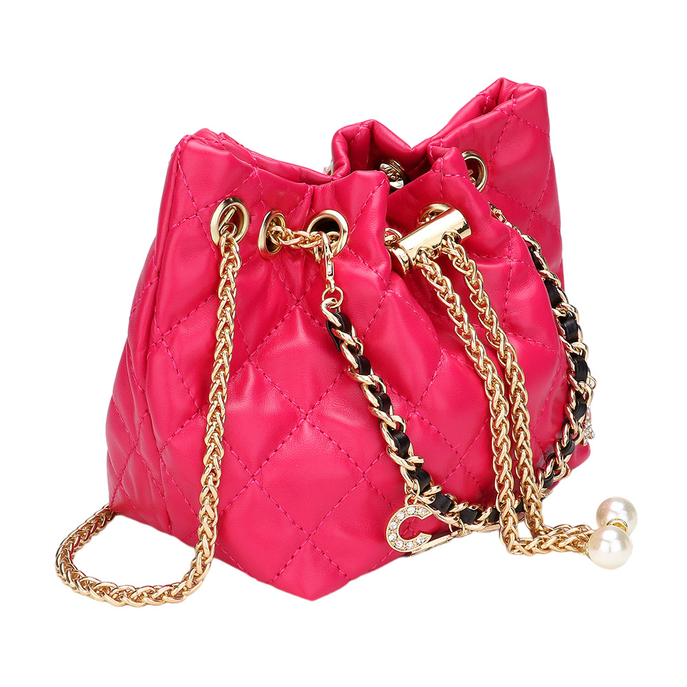 Details • Size : 6" X 5.5" X 3.5" • Strap Size : 43" L / Detachable • Top Handle Chain Size : 1.25" H, 10.5" L • Drawstring Closure • Elevate your style with this quilted shoulder bag featuring a chic chain strap and decorative charm accents. Compact yet spacious, it’s the ideal accessory for both day and evening looks, adding elegance and sophistication to any outfit.