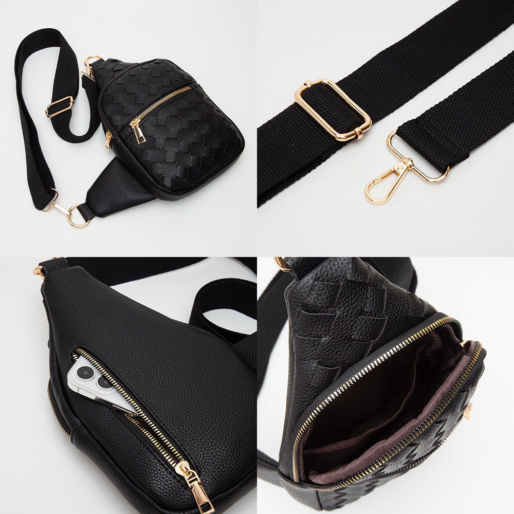 • Add stylish convenience to your day with this woven pattern sling crossbody bag. Featuring a compact design, adjustable strap, and secure zip compartments, it’s the perfect everyday accessory for keeping essentials close while elevating your casual or travel look.