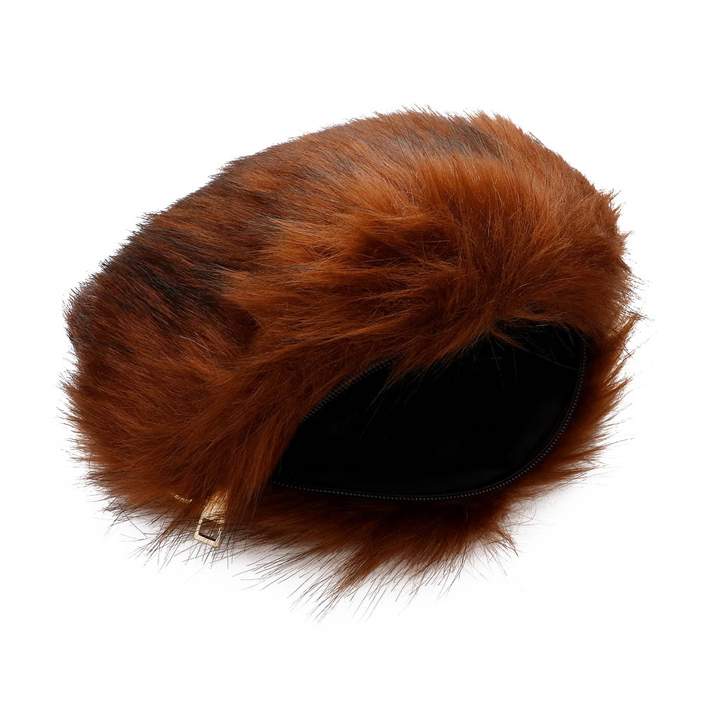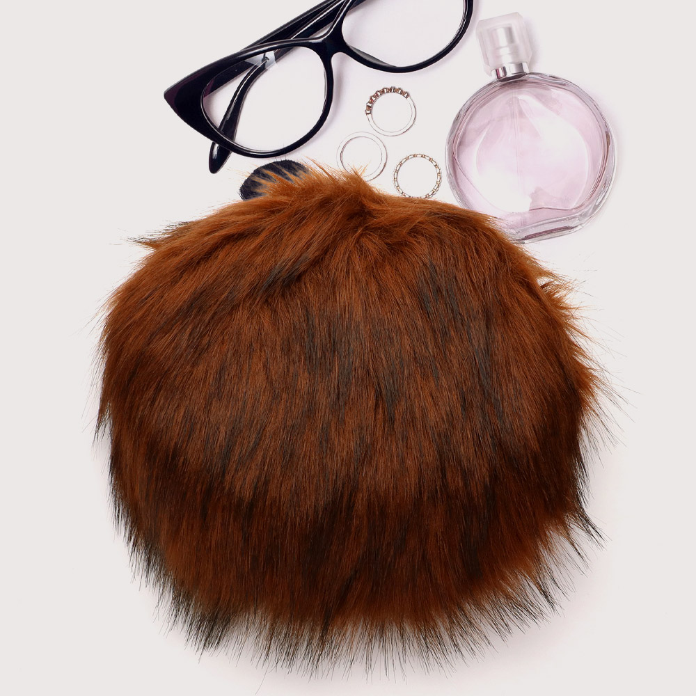 Details • Bag Size : 10" X 10" • Chain Strap Size : 44" L / Detachable • Material : 100% Polyester • Zipper Closure • Trendy round faux fur shoulder bag featuring a plush, fuzzy texture that adds a bold and stylish statement to any look. Compact yet functional, this soft design is perfect for carrying essentials on casual outings, parties, or fashion-forward streetwear looks. A cozy accessory for any season.