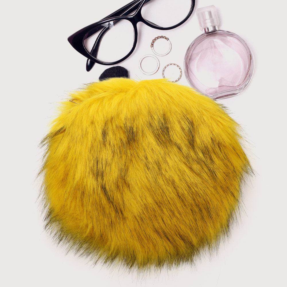 Details • Bag Size : 10" X 10" • Chain Strap Size : 44" L / Detachable • Material : 100% Polyester • Zipper Closure • Trendy round faux fur shoulder bag featuring a plush, fuzzy texture that adds a bold and stylish statement to any look. Compact yet functional, this soft design is perfect for carrying essentials on casual outings, parties, or fashion-forward streetwear looks. A cozy accessory for any season.