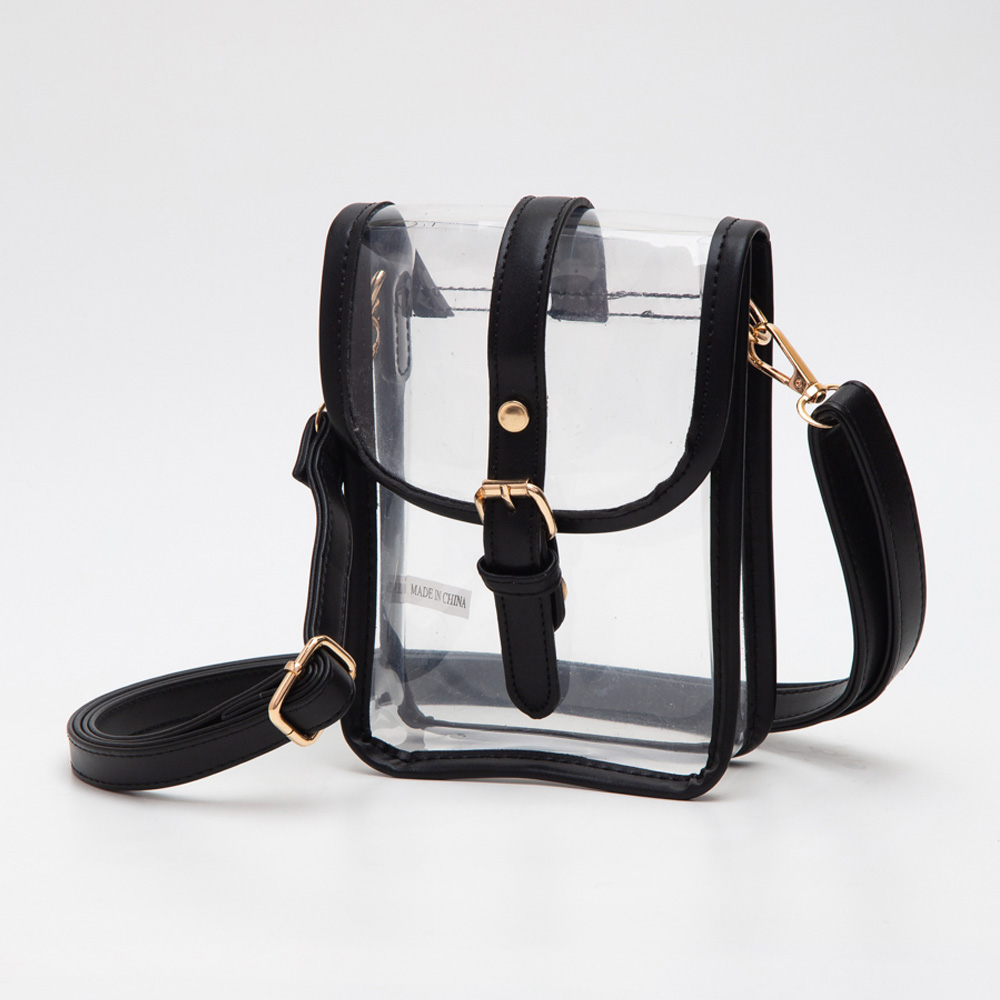 Faux Leather Belt Buckle Pointed Transparent Crossbody Bag