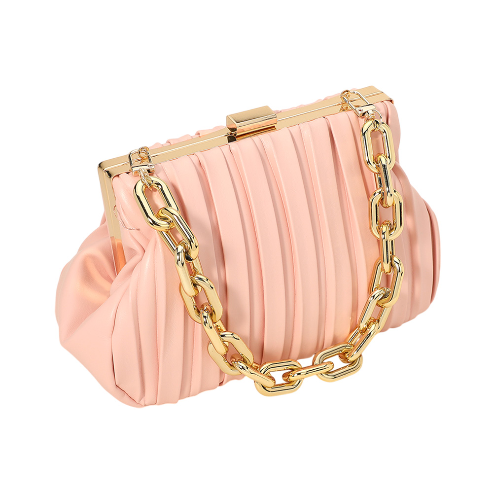 Faux Leather Chunky Chain Strap Accented Clutch Bag Crossbody Bag