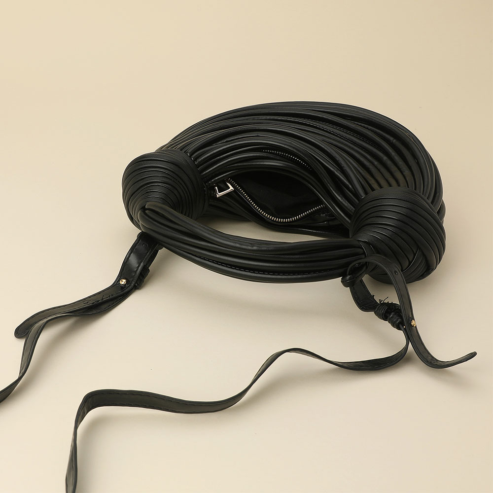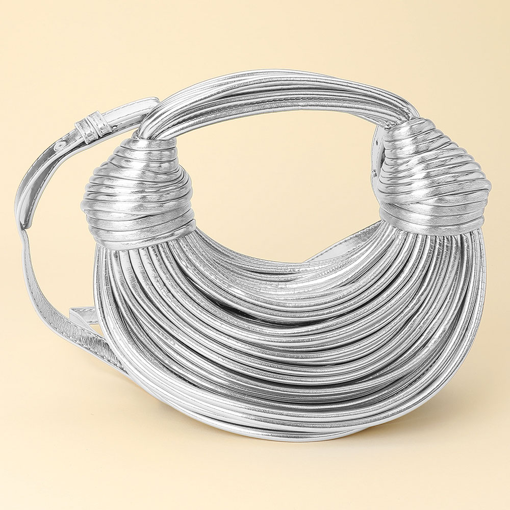 • Stand out with this textured statement shoulder bag featuring a sculpted design and intricate wrapped detailing. Its modern silhouette and artistic structure make it a versatile piece that adds a touch of high-fashion sophistication to any day or evening ensemble.