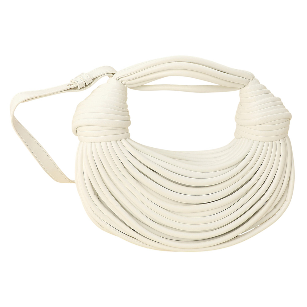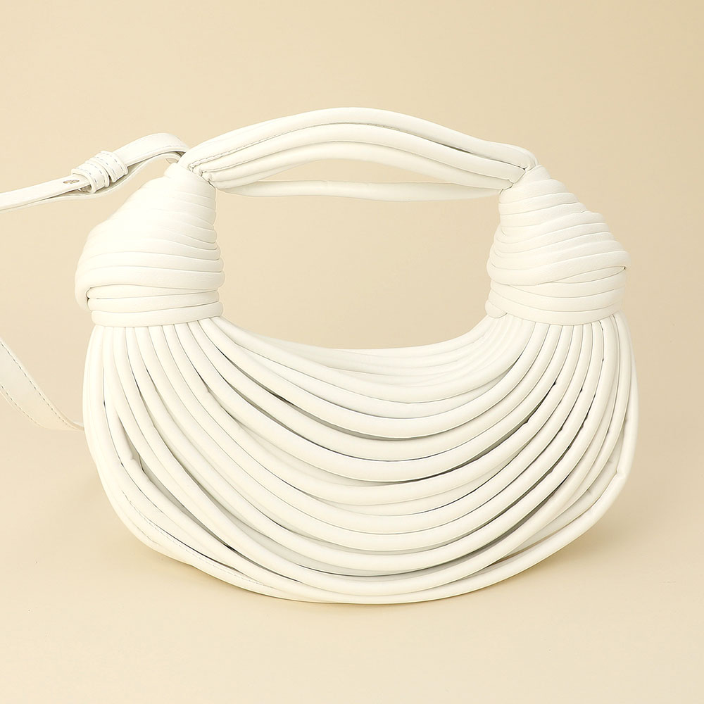 Details • Size : 11" X 4" X 3" • Top Handle Size : 5" L • Strap Size : 40" L / Adjustable, Detachable • Zipper Closure • Stand out with this textured statement shoulder bag featuring a sculpted design and intricate wrapped detailing. Its modern silhouette and artistic structure make it a versatile piece that adds a touch of high-fashion sophistication to any day or evening ensemble.