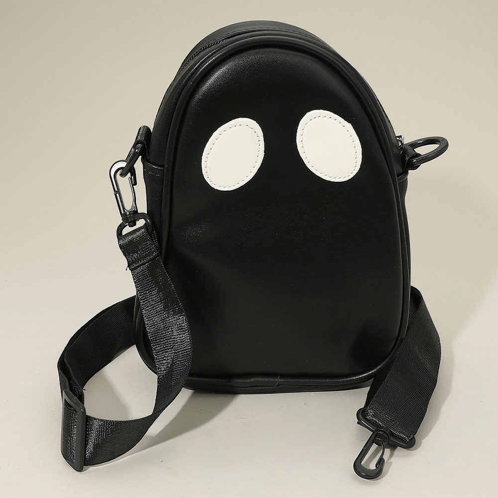Details • Size : 6.5" X 8.75" X 2.25" • Strap Size : 53" L / Adjustable, Detachable • Zipper Closure • Boo-tiful and bold! This ghost crossbody bag features playful black eyes, an adjustable strap, and a compact design—perfect for Halloween parties or adding a spooky twist to your everyday outfit.