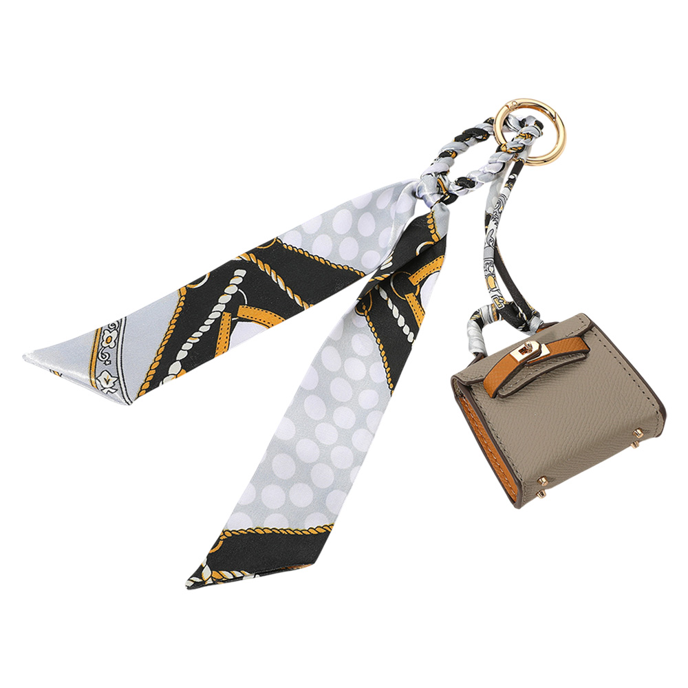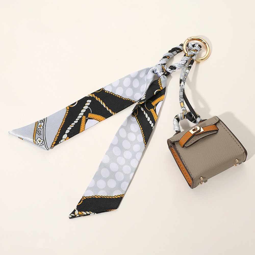 Faux Leather Elegant and Stylish Mini Purse / Bag Charm with Abstract Pattern Petit Scarf