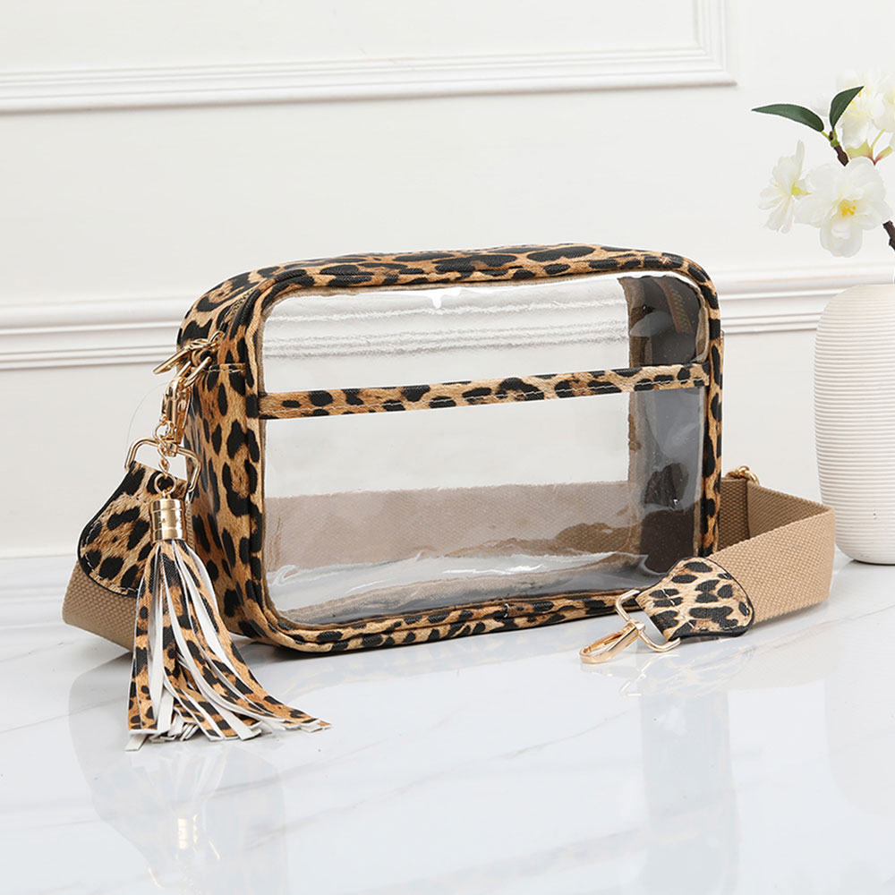 Faux Leather Leopard Transparent Rectangular Crossbody Bag
