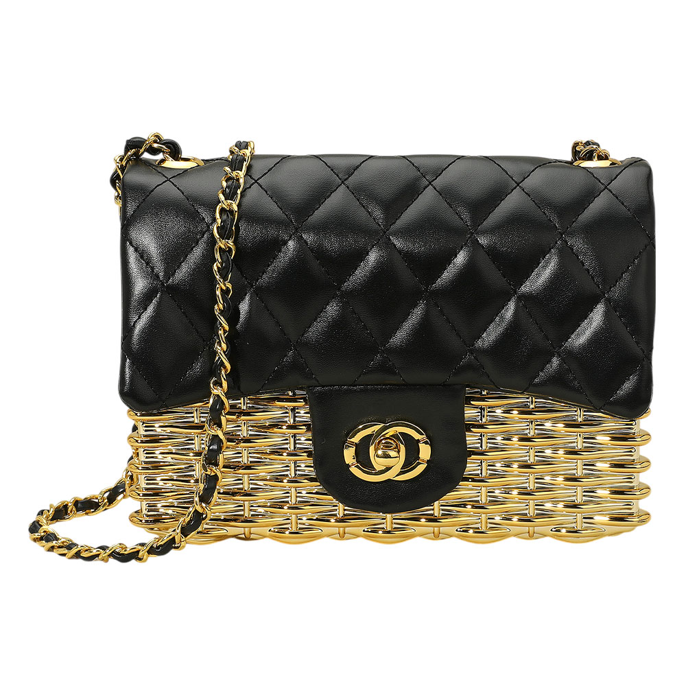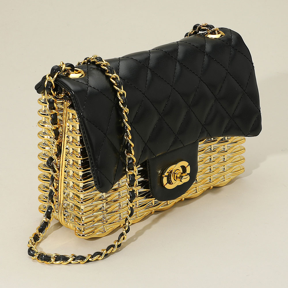 Details • Size : 7.75" X 5.5" X 2.5" • Strap Size : Adjustable • Twist Lock Clasp Closure • Elevate your look with this quilted crossbody featuring a luxe woven base, twist-lock closure, and gold-accented chain strap. Perfect for chic daywear or elegant evenings.