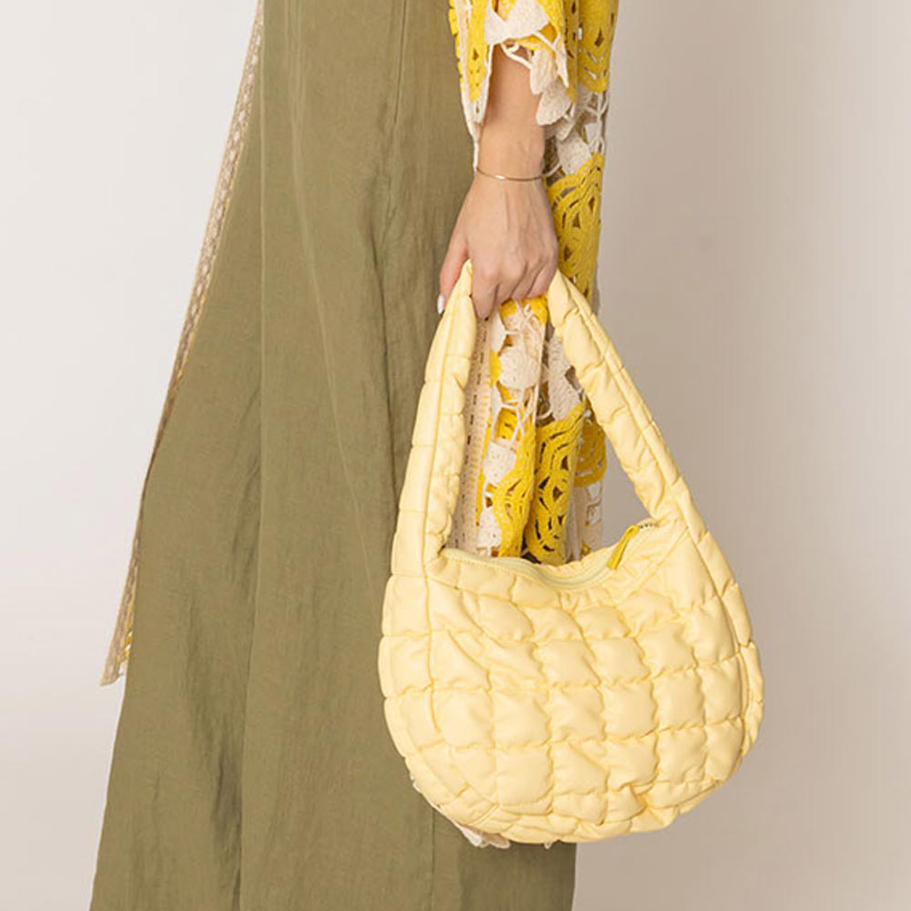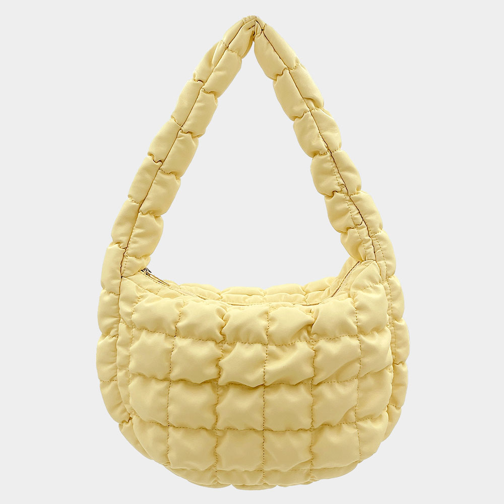 Faux Leather Quilted Puffer Shoulder Cloud Bag