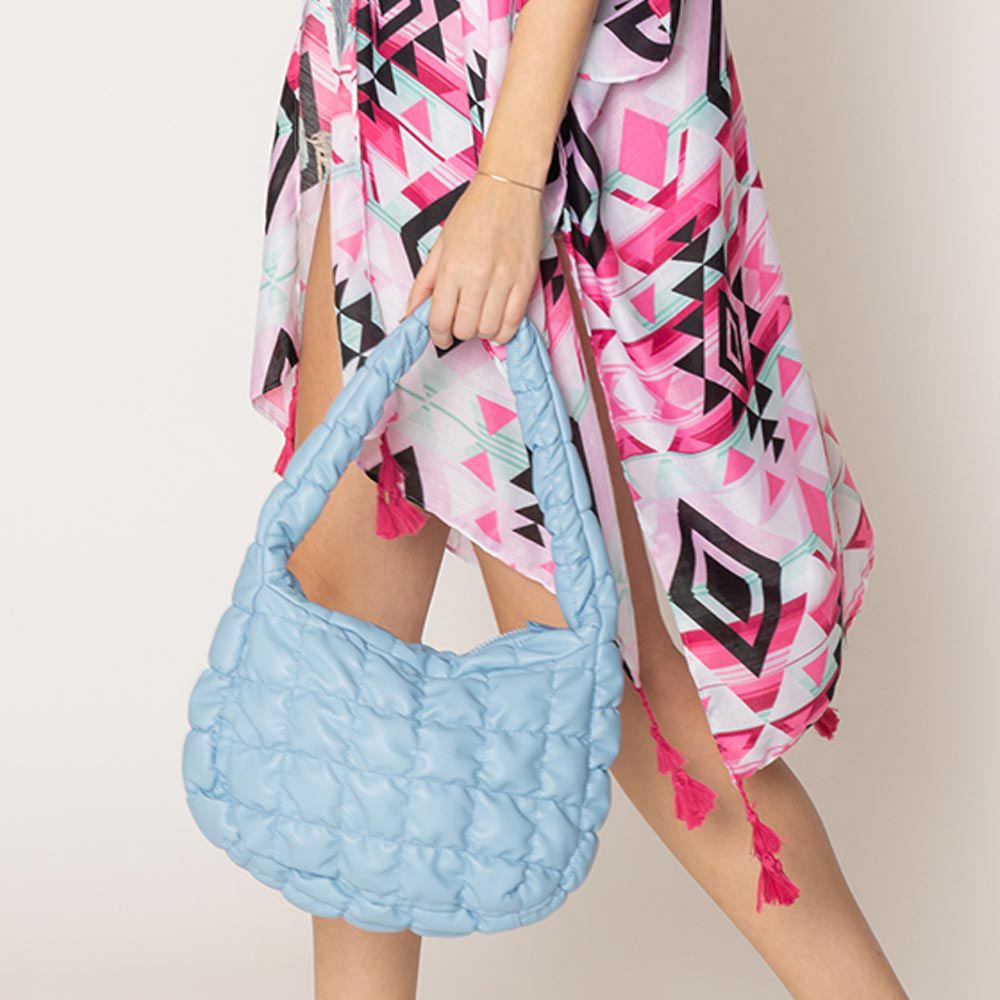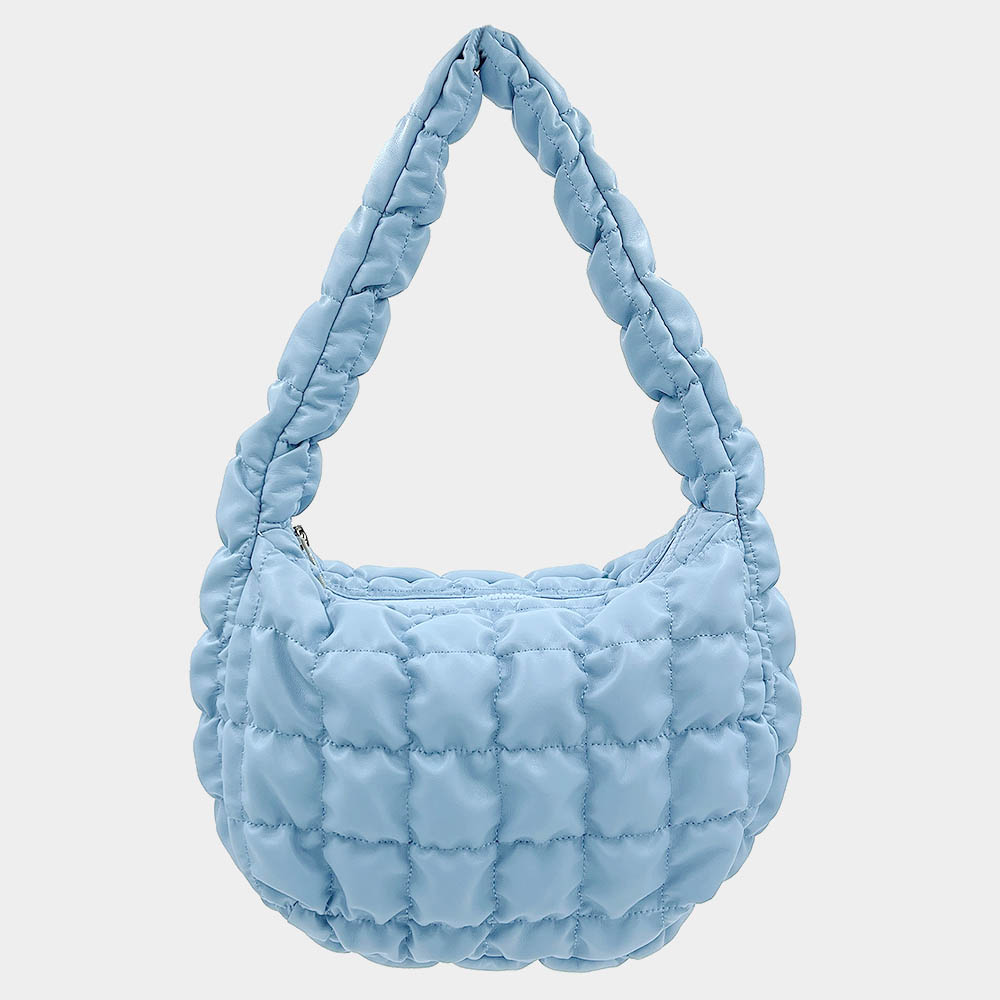 Faux Leather Quilted Puffer Shoulder Cloud Bag
