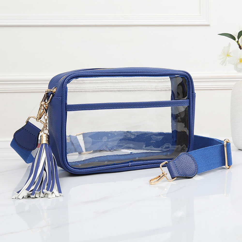 • Stay stylish and compliant with this clear stadium-approved crossbody bag. Perfect for concerts, sports events, and travel. Features an adjustable strap, zip closure, and compact size to keep essentials secure and visible.