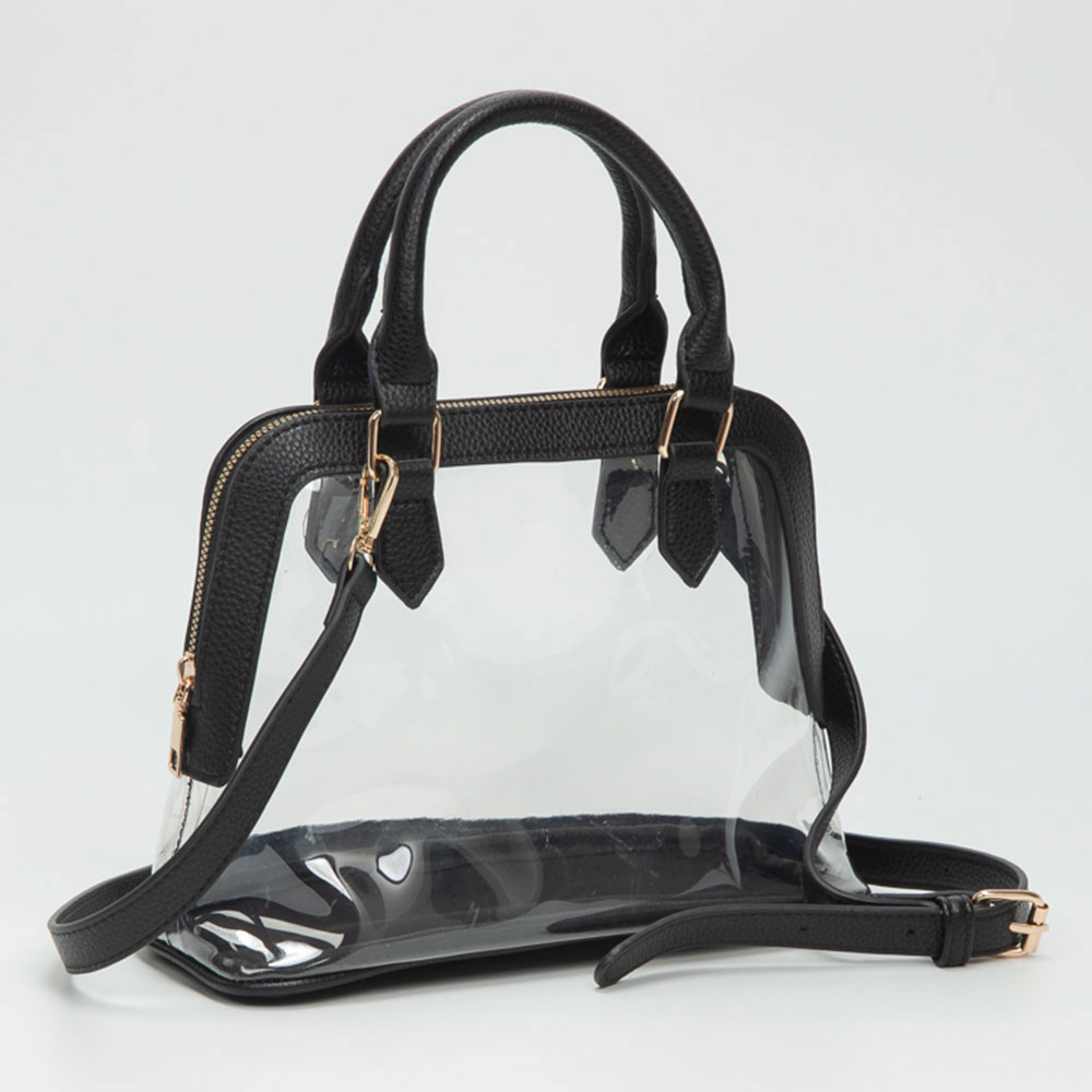 Faux Leather Trim Transparent Structured Top Handle Handbag / Crossbody Bag