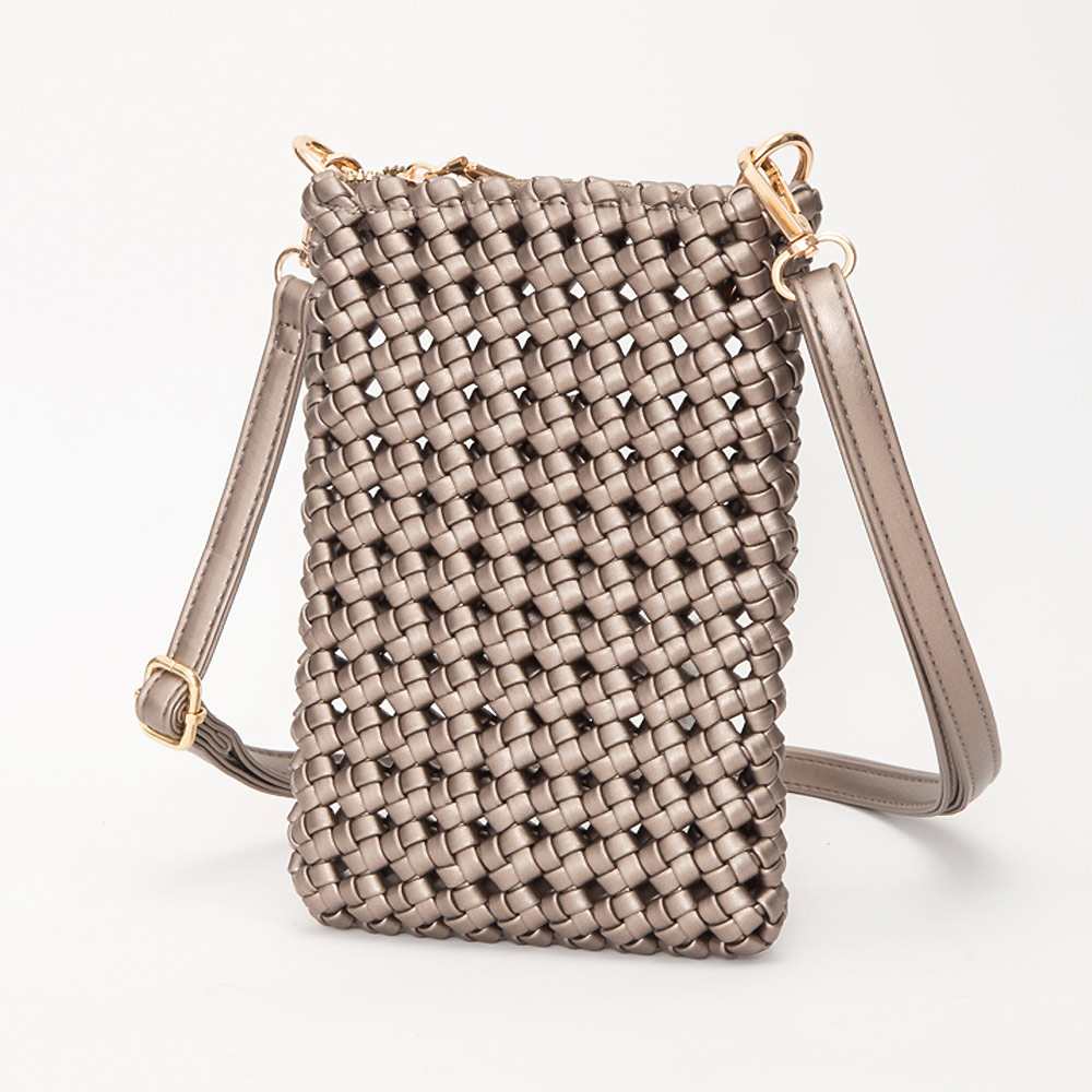 Details • Size : 5.5" X 8" X 1" • Strap Size : Adjustable, Detachable • Zipper Closure • Chic woven crossbody bag designed for phones and essentials. Features an adjustable strap and sleek finish, perfect for everyday wear, travel, or events. Lightweight and hands-free convenience.