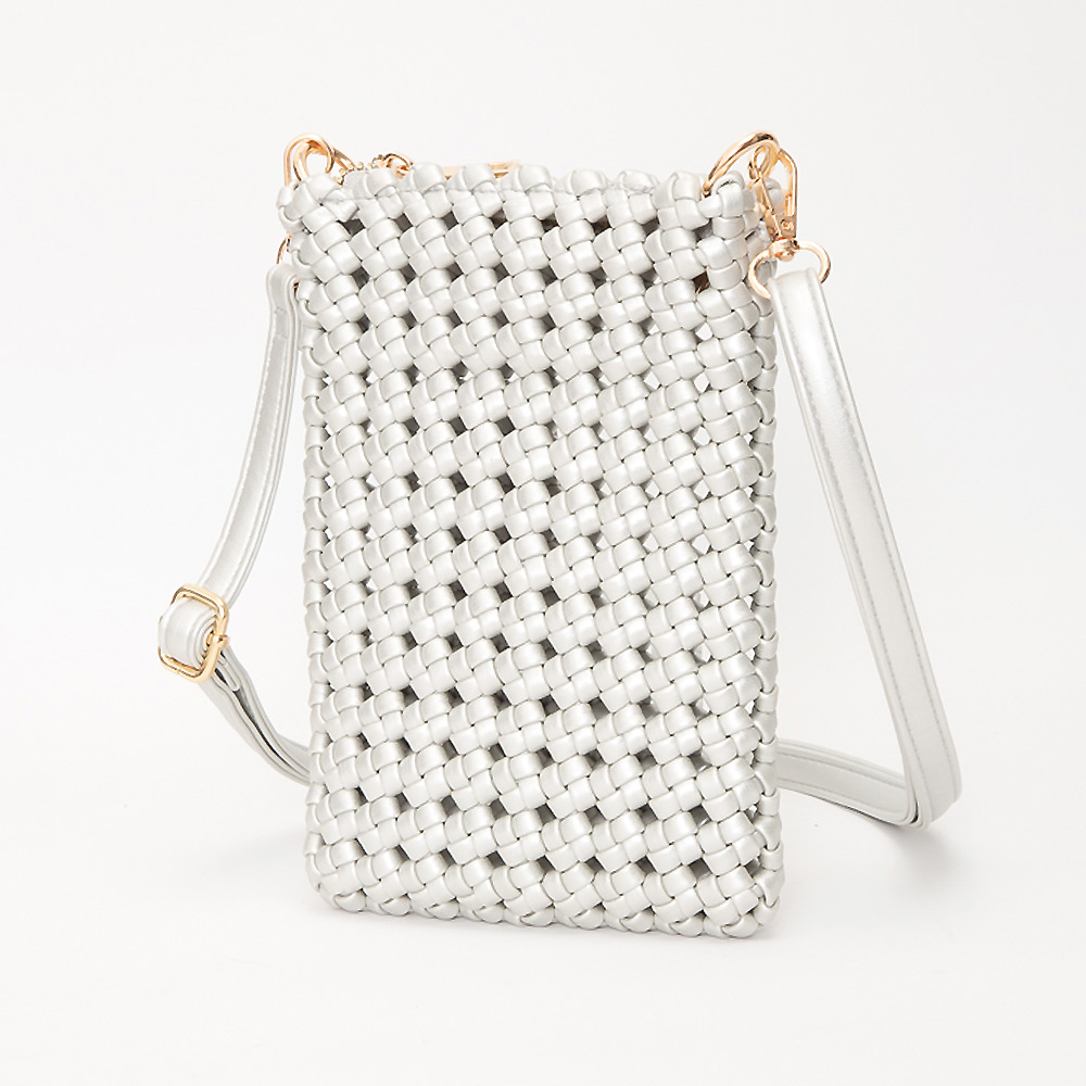 • Chic woven crossbody bag designed for phones and essentials. Features an adjustable strap and sleek finish, perfect for everyday wear, travel, or events. Lightweight and hands-free convenience.