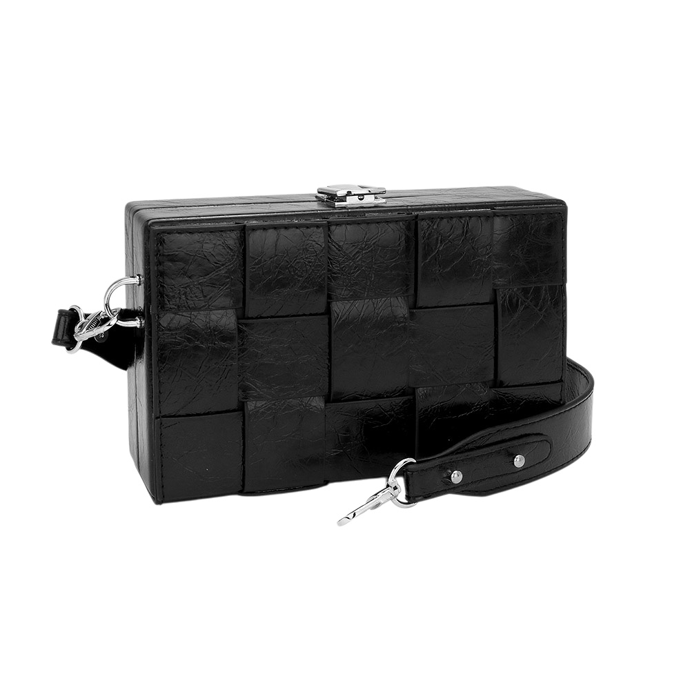 Faux Leather Woven Square Box Crossbody Bag