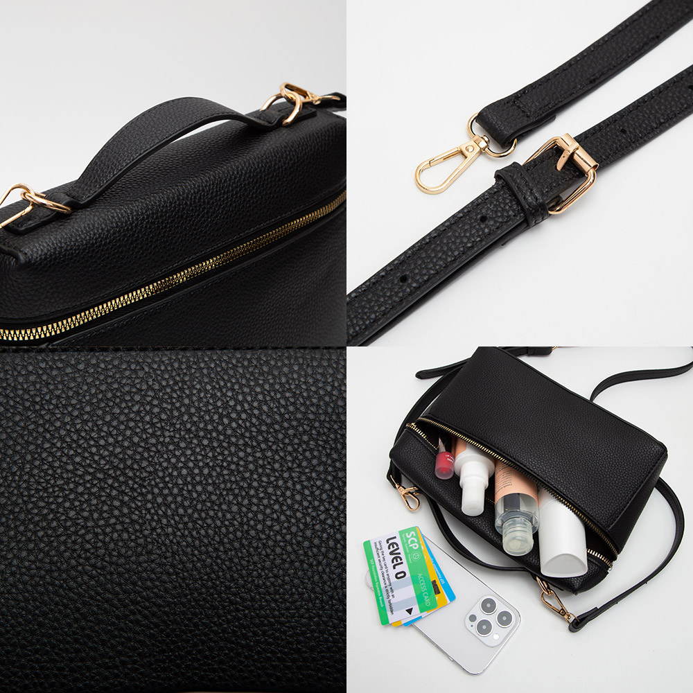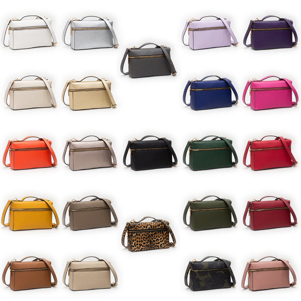 Faux Pebble Leather Box Hand Bag / Crossbody Bag