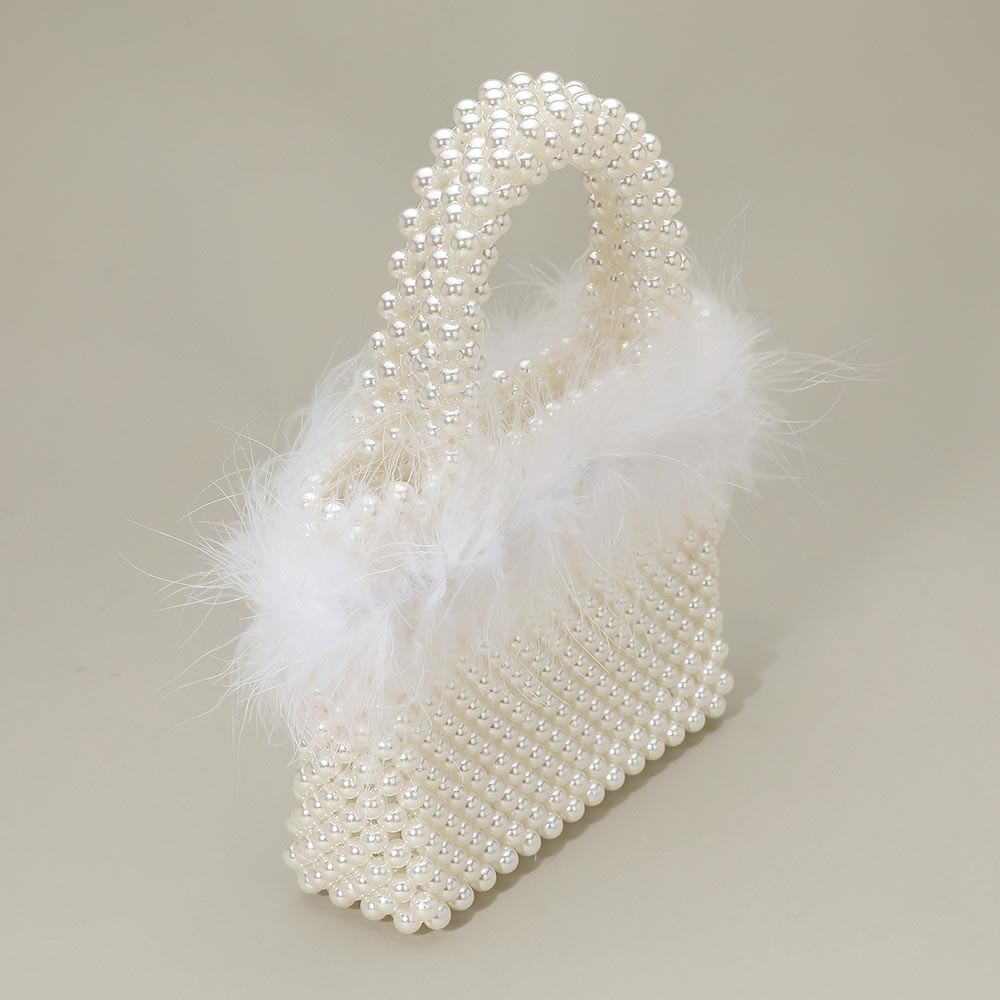 • Chic mini tote featuring intricate bead detailing, soft feather trim and a sturdy handle. Perfect for parties, events, evening outfits and elegant special occasion looks.