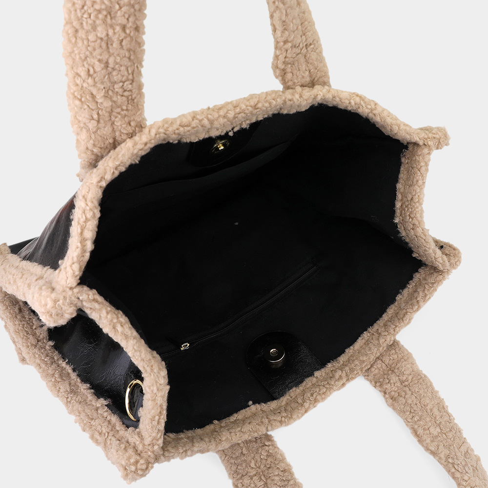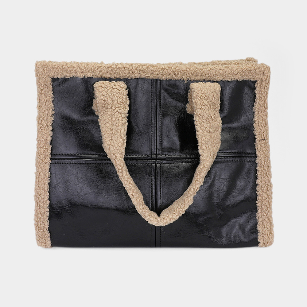Fleece Trim Faux Leather Tote Bag / Crossbody Bag