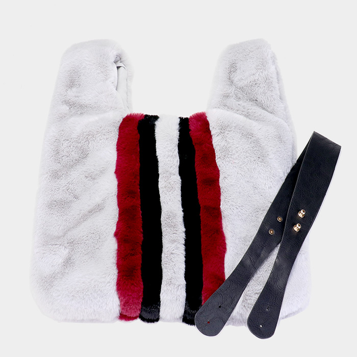 Fleece Trim Faux Leather Tote Bag / Crossbody Bag