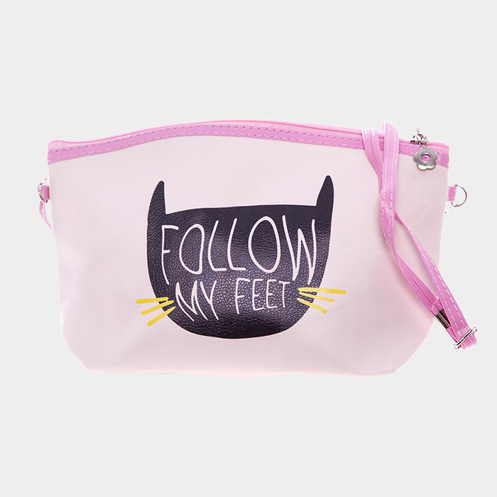 "Follow My Feet" Cat Print Zipper Pouch Bag