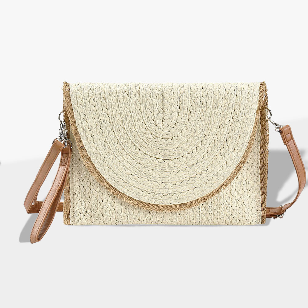 Frayed Trip Two Tone Straw Clutch / Crossbody Bag