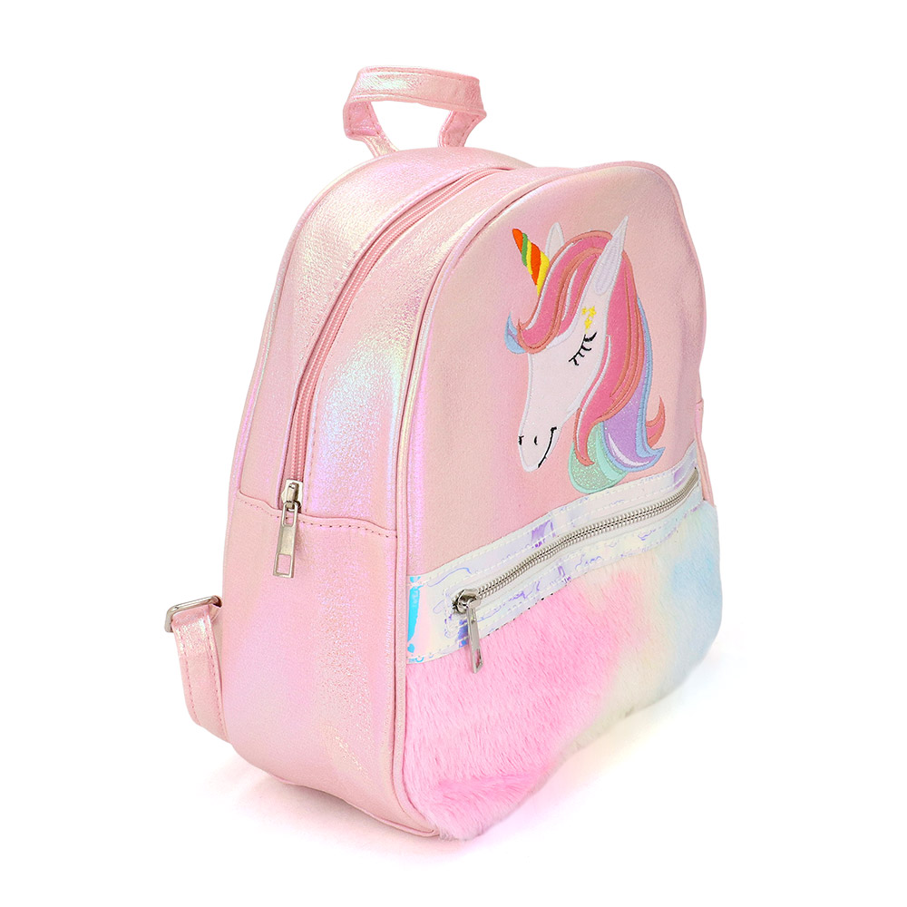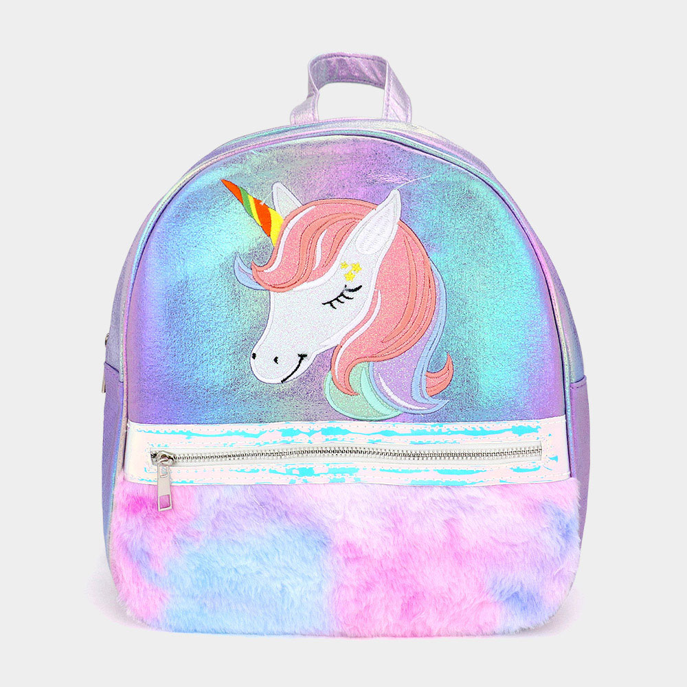 Fuzzy Unicorn Metallic Backpack Bag