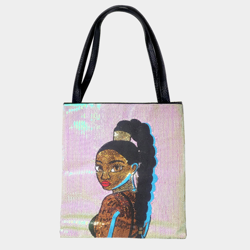 Girl Sequin Faux Leather Shoulder Bag