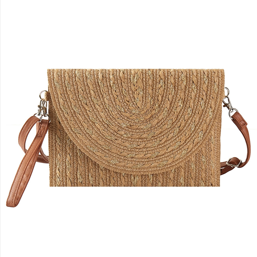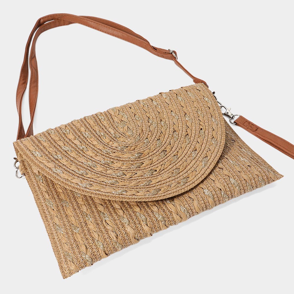 Gold Threads Mixed Straw Clutch Bag / Crossbody Bag