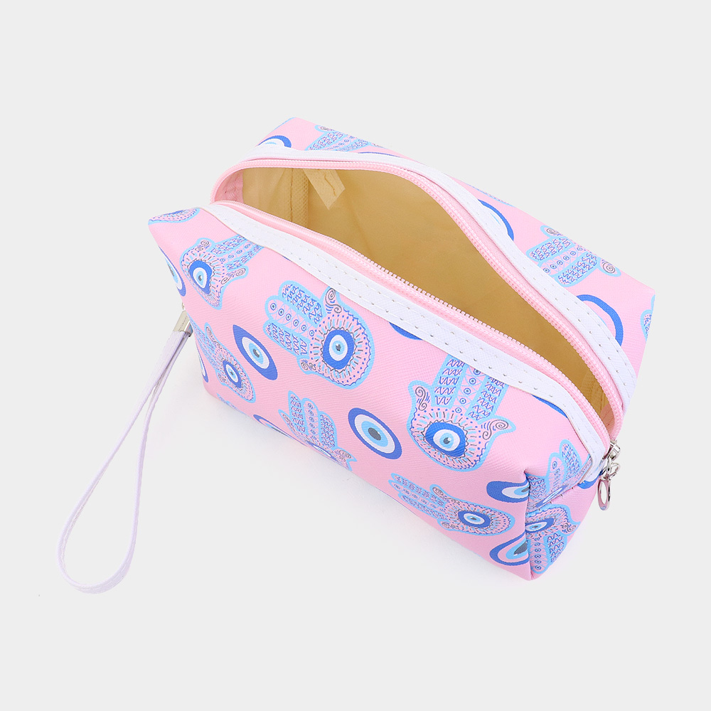 Hamsa Hand Evil Eye Printed Pouch Bag with Wristlet