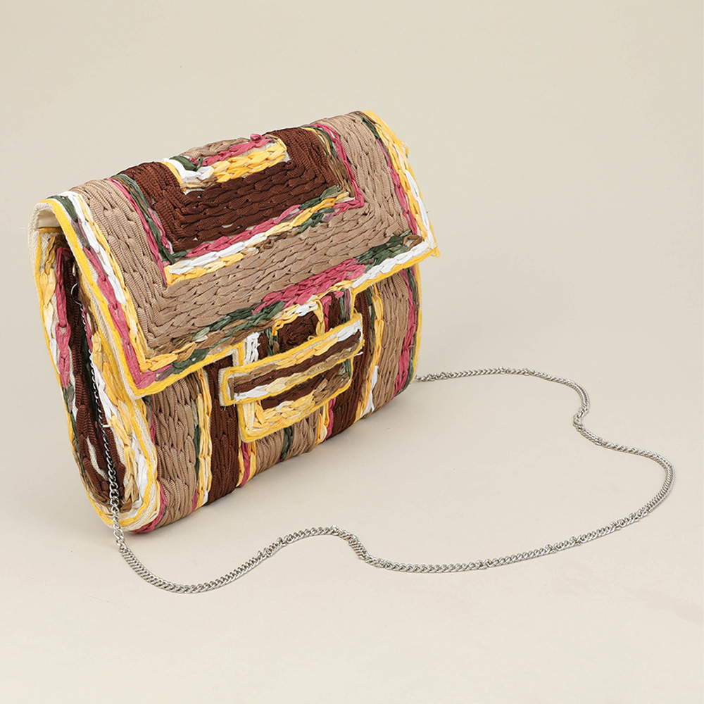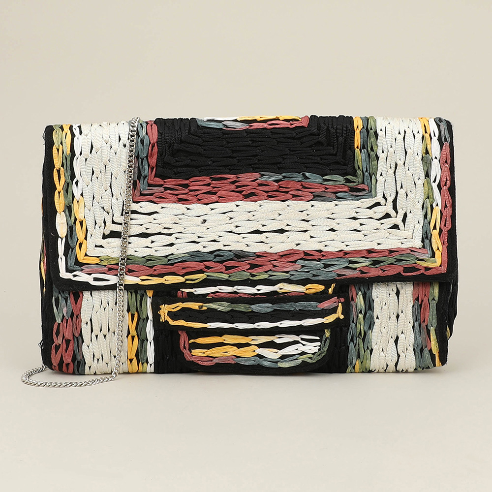 Handcrafted Raffia Geometric Pattern Clutch Bag / Crossbody Bag