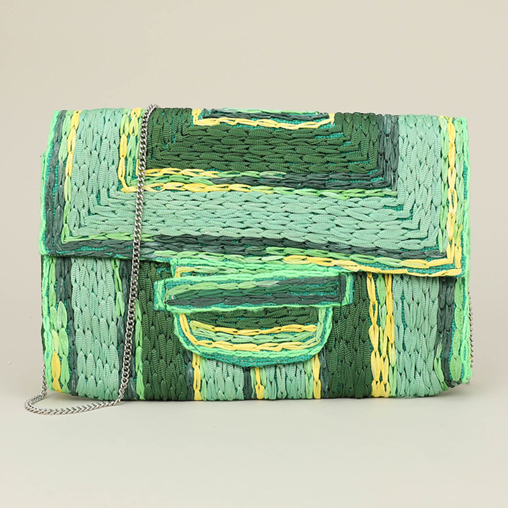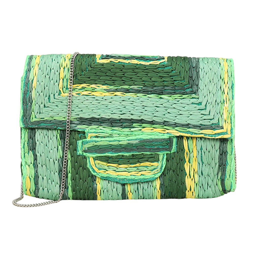 Handcrafted Raffia Geometric Pattern Clutch Bag / Crossbody Bag