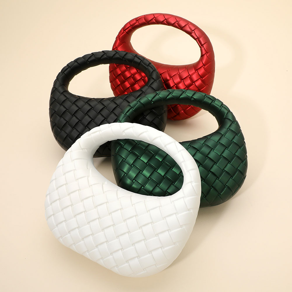 Hard Shell Braided Woven Top Handle Crossbody Handbag