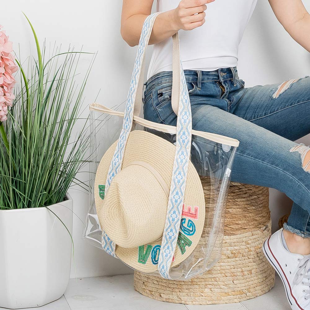 Hat Carrying Transparent Aztec Pattern Strap Tote Bag