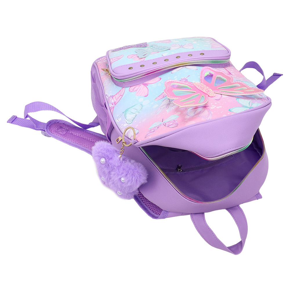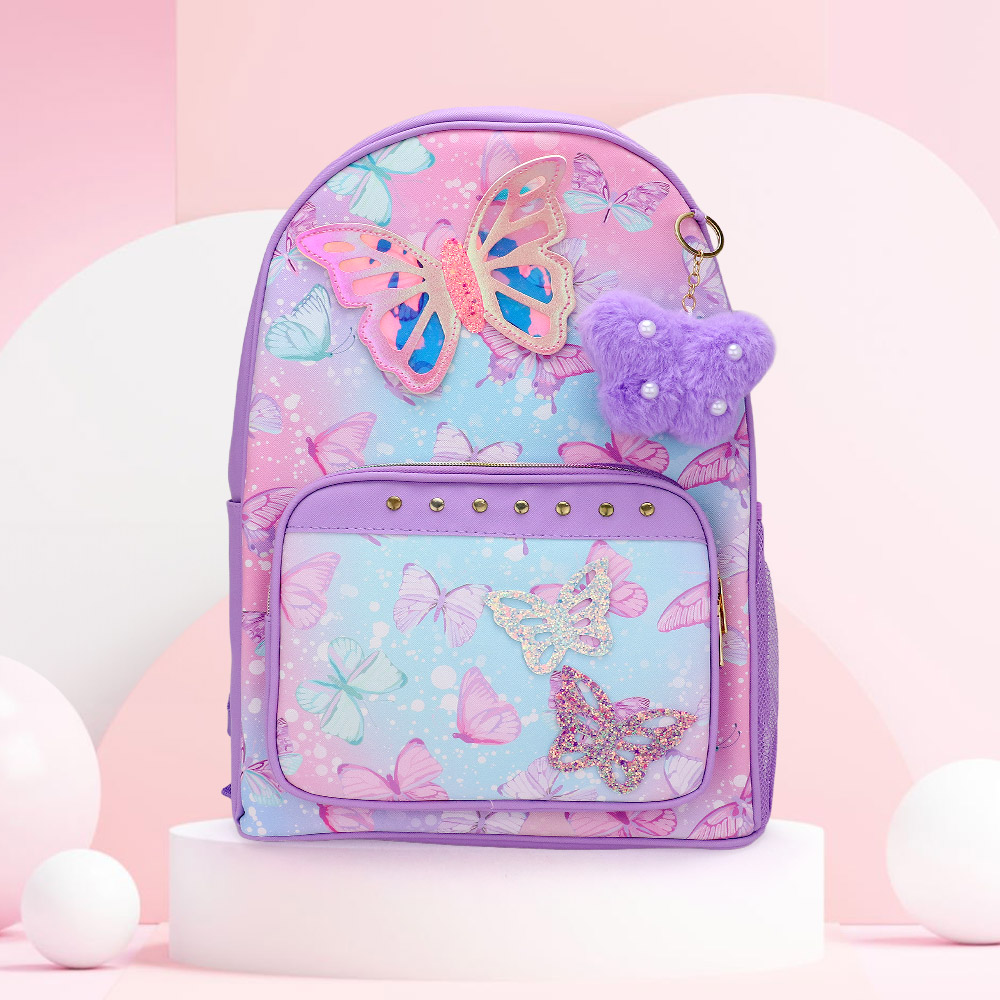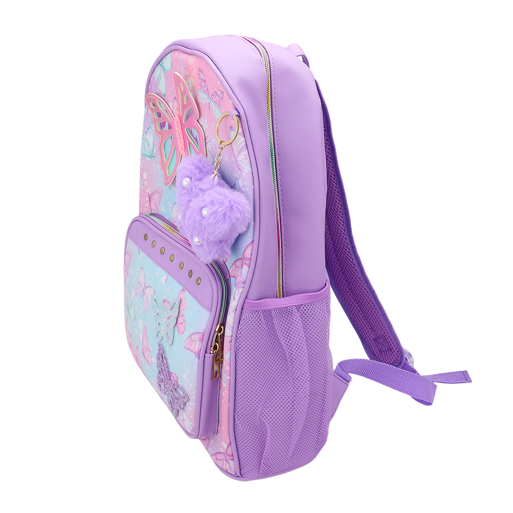 HOT FOCUS - Butterfly Patch Decorative Deluxe Backpack with a Pom Pom Keychain